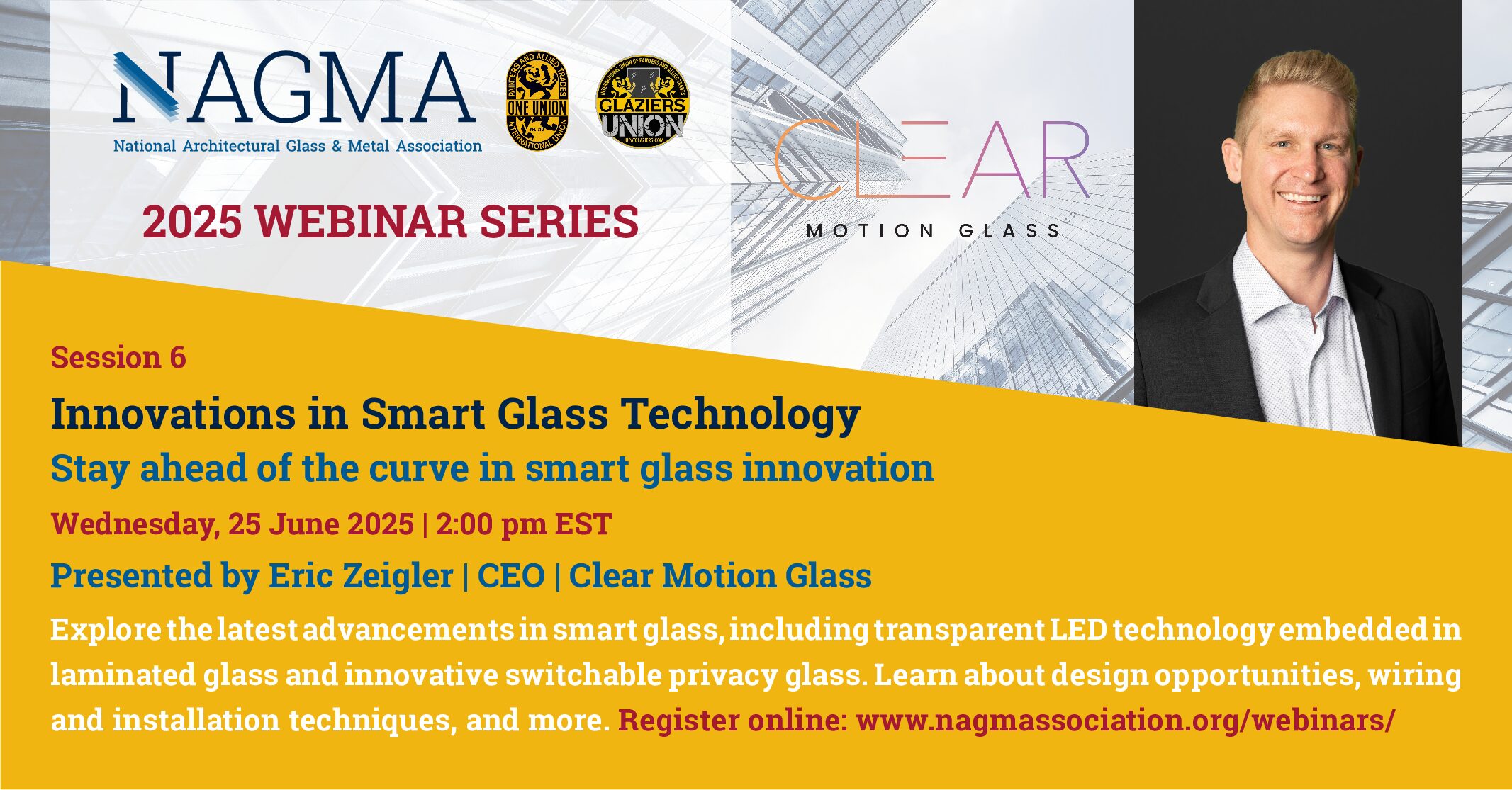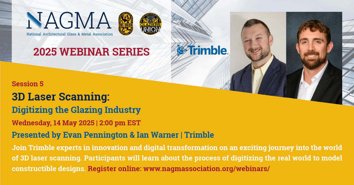 NAGMA has collaborated with our industry partners at the International Union of Painters and Allied Trades (IUPAT) to bring you our monthly webinar series designed to share insights on glass and glazing topics that apply nationwide. All architectural glass and metal industry personnel are encouraged to attend including architects, contractors, building envelope consultants, facility managers, and anyone else interested in learning about glass and glazing products and issues.